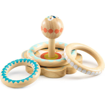 BabyHoopi is baby’s first game of rings, made of natural wood in pastel colors for ages 10 months and up. Handle the 3 rings to stack them on the shaft.