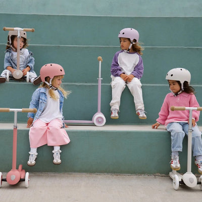 The Banwood Eco Helmet combines safety and sustainability, made from durable ABS recycled materials with a protective foam lining. Lightweight at 355 g, it features a dial-fit adjustment system, recycled chinstrap, and ventilation for comfort.