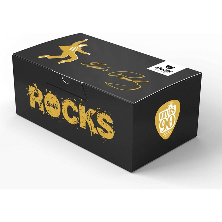 Steiff proudly honors the King of Rock ‘n’ Roll with this special limited edition Teddy Bear celebrating Elvis Presley’s 90th birthday. Born in 1935, Elvis became one of the most significant cultural icons of the 20th century, captivating the world with his unmistakable voice, electrifying performances, and signature sense of style. From his pioneering role in the birth of rock and roll to his unforgettable hits like “Jailhouse Rock,” Elvis’s charisma and charm transcended music, leaving an enduring legacy in pop culture history. Crafted with the utmost care, this Steiff Elvis Teddy Bear stands 13 inches tall and is made from the finest mohair. Paying tribute to one of Elvis’s most iconic looks, the bear celebrates his unique fashion and enduring spirit, capturing the essence of the King’s youthful energy and timeless appeal. Limited to just 1,935 pieces worldwide, this collector’s item is a must-have for Elvis enthusiasts and Steiff aficionados alike. Join us in celebrating the life and legacy of Elvis Presley, a legend whose sound and image defined a generation. This enduring collectible will surely hold a cherished place in collections around the world.