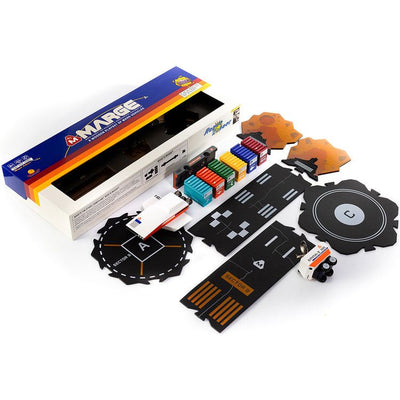 MARGE: Mars Agency for Research + Geographical Exploration The Rogue Echoes play set includes a hi-tech trio of AI-powered vehicles. What's in the box? EMMA-2 comms vehicle with suspension base XB Shuttle with metal propulsion engines ATP with 6 assorted supply containers Puzzle roads Rogue Echoes Comic Book