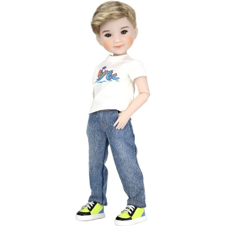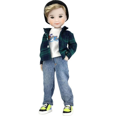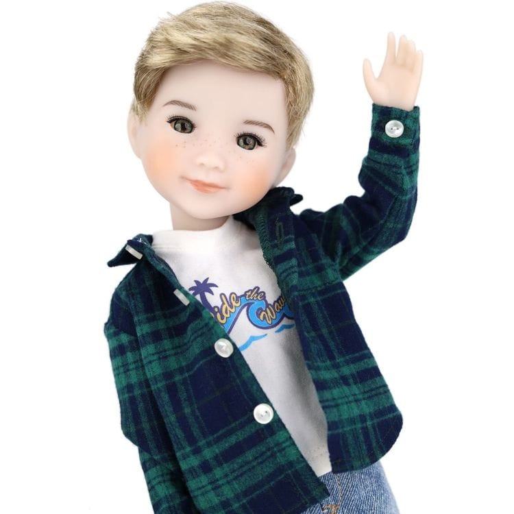 Ride the Wave Alex is a surfer and entrepreneur. He spends his weekdays chasing the waves after school and working on his business, ‘Couch Surfer’. He came up with the idea when he noticed many beautiful surfboards were abandoned. He decided to give these boards a new lease of life by converting them into tables. After he graduates, he wants to travel the world following big waves while honing his craft. Eventually, he wants to settle down on the coast and expand his business. Alex is passionate about saving our oceans from pollution and plastic waste. Alex features medium blonde hair. He has beautiful hazel eyes and a sun-kissed complexion with freckles. He comes with his signature ‘Ride the Wave’ t-shirt, jeans, plaid flannel shirt, black knit cap, and sneakers. Shoot the Curl Alex - Banzai! *Alex's nails are not painted.